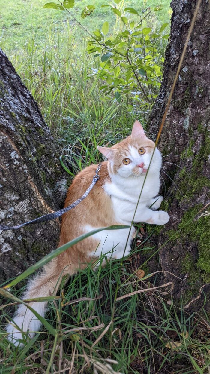 Кошка потерялась 31 августа в придорожной зоне отдыха. Животное вывернулось из шлейки и рвануло в лес, поиски в зарослях ничего не дали, на данный момент нет сведений и о её появлениях в зоне работы камер.