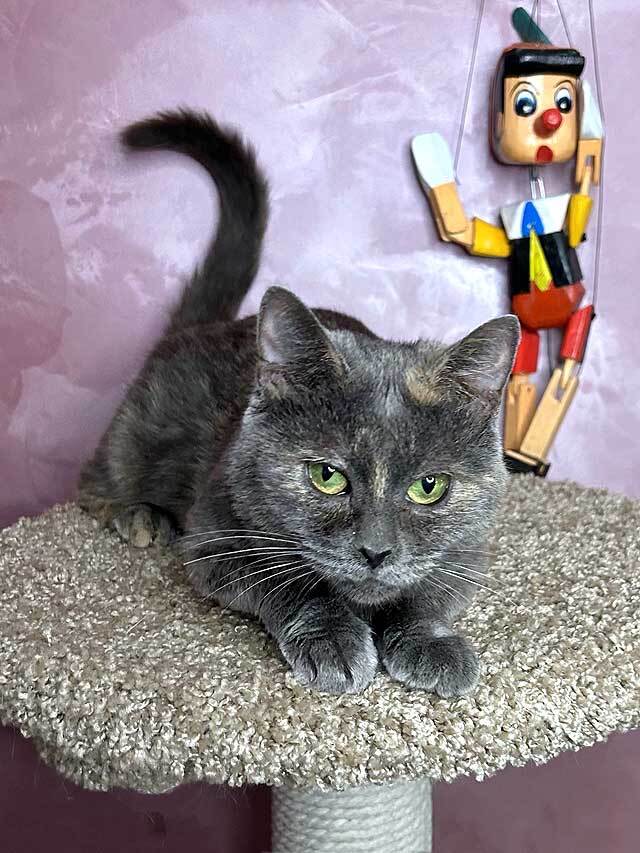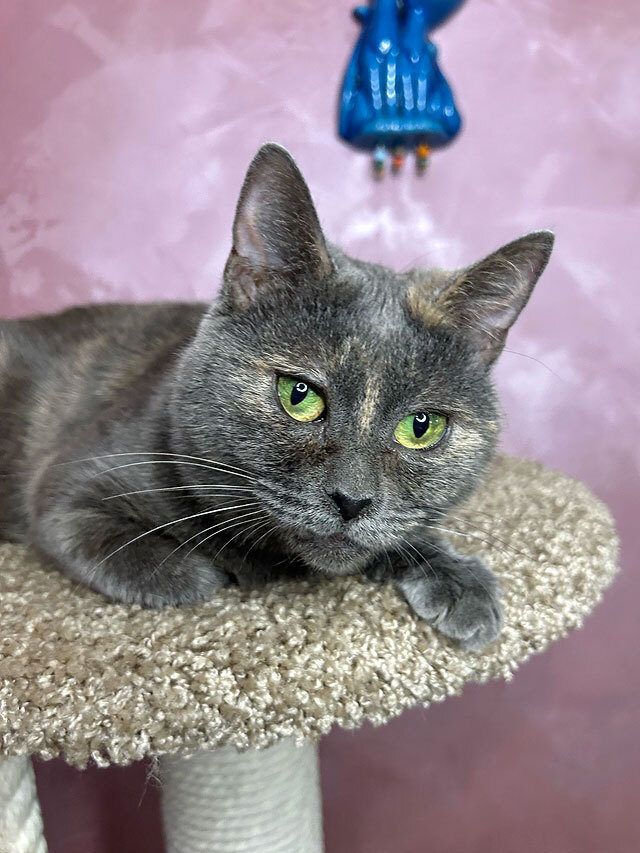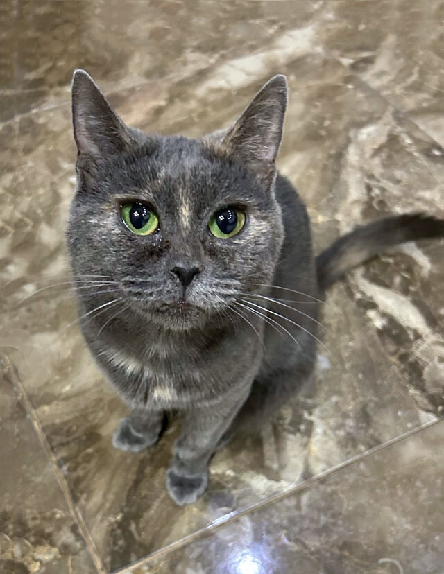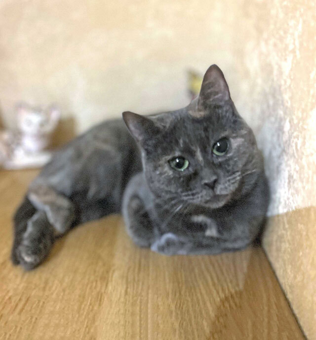 Она то ли метис русской голубой, то ли черепаховая… История запутанная, кто там с кем нагрешил. Масяня - бедося, кошечка с особенностями, она сопит, потому что у нее маленький носик и еще у не все зубки (болели, плохие удалили), но это не мешает ей есть любую вкусную и полезную еду.