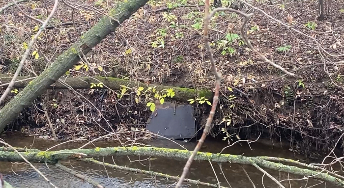 Выше по течению, бани старые стояли. По весне их снесли. Дамбу укрепляли. Может оттуда?