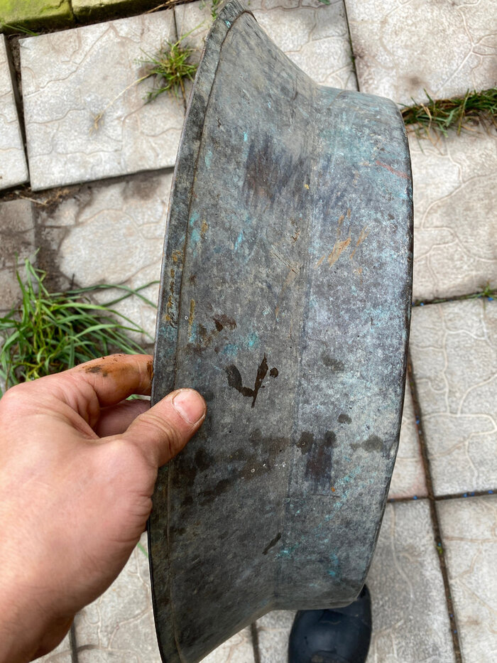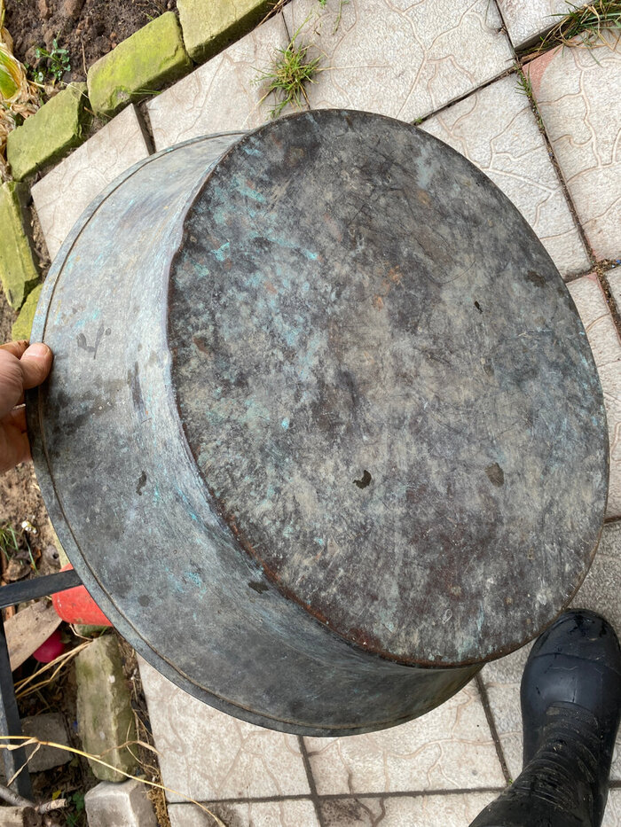 Здоровенный таз! Сначала подумал, что медный, но оказалось - из латуни! Вот так он выглядит чистым и умытым: