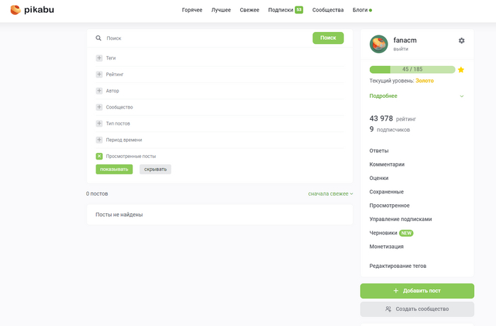 Что фигня с поиском после "техработ"? С вашими изменениями с кучей постов в горячем с рейтингом -1000, навигация по ленте у меня исключительно по закладке с поиском постов по рейтингу. Сегодня же я вижу в результатах 0 постов.