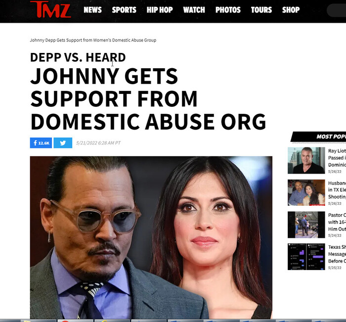 Незадолго до этого tmz опубликовало статью, что Деппа поддержала организация против домашнего насилия (женская). https://www.tmz.com/2022/05/21/johnny-depp-support-from-wome...