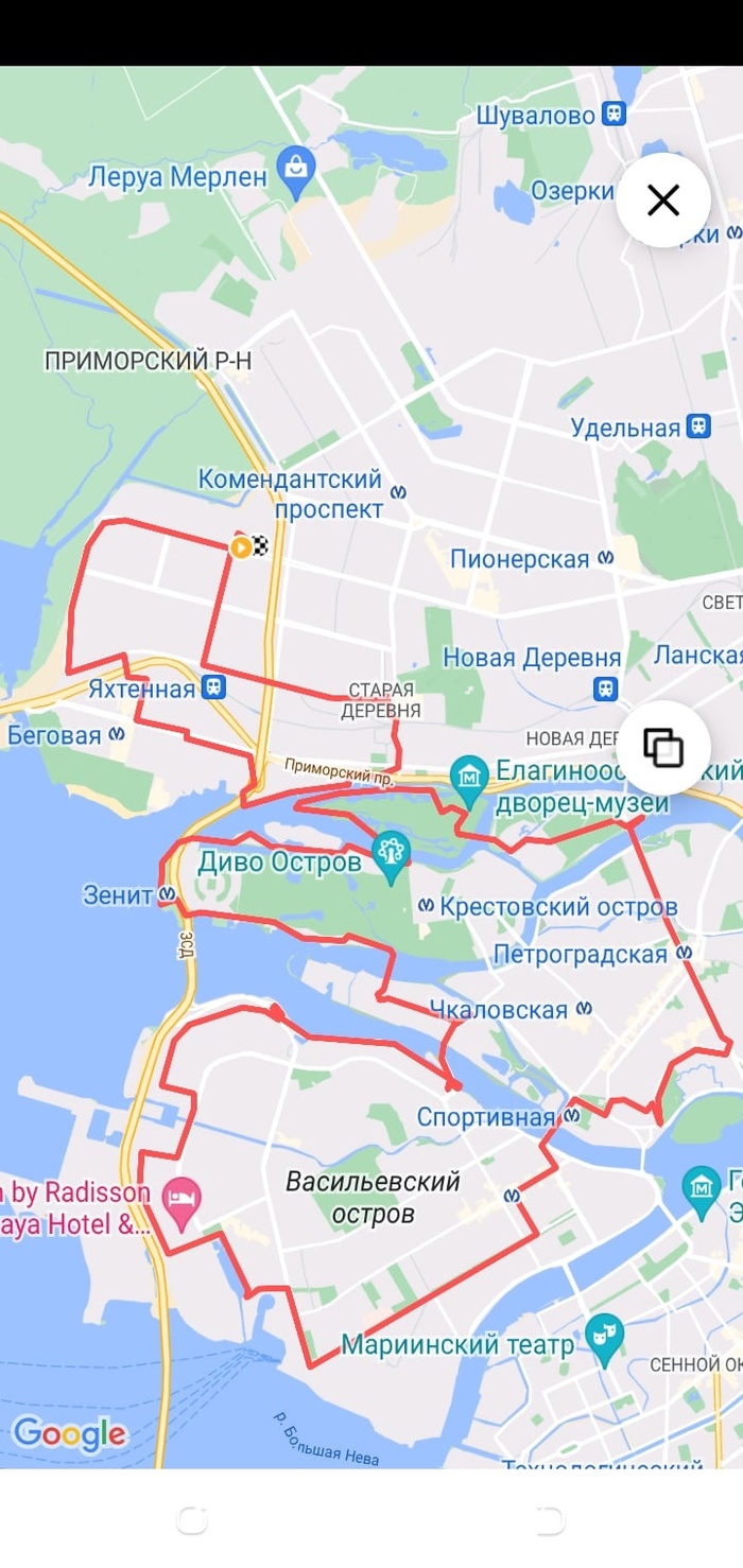 Трек проложился по наб.Макарова, через ВО, Петроградку и вообще петель накрутил с левыми поворотами против часовой стрелки.