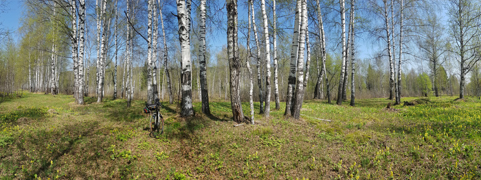 Березы, кажется, поверили в весну, наконец-то. Еще не цветут, но уже зеленеют помаленьку. и опять - найди велик )