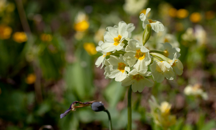Примула. Вопреки гордому имени (первая, лат.) - один из последних первоцветов у нас. Внизу слева - отцветший кандык.