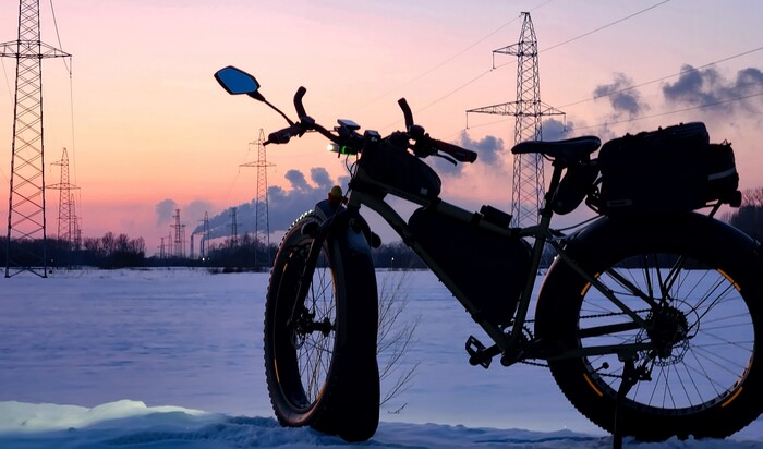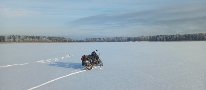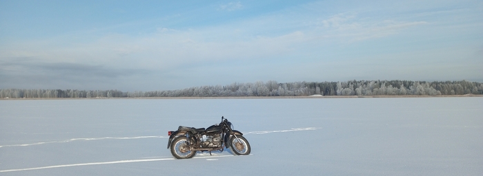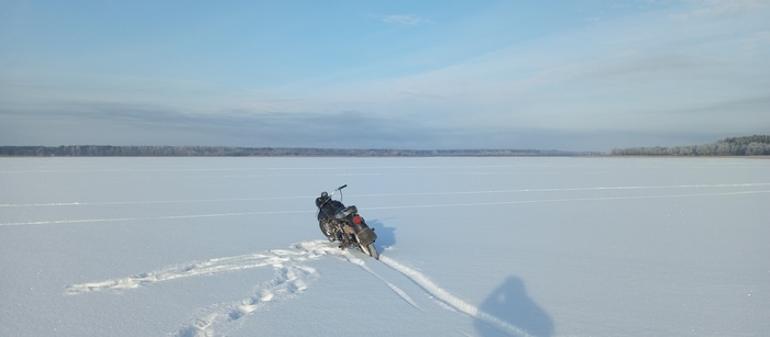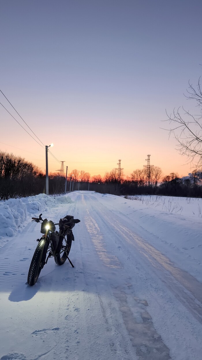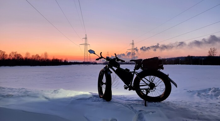 "Дорога", наиболее ярко демонстрирующая преимущества фэтбайка. Буранки (раскатанные снегоходами трассы) по реке. Фэт держит отлично, а вот обычным горникам местами сложно, еще не устоялся наст. Ближе к весне планируем повторить, там уже как по асфальту будет )