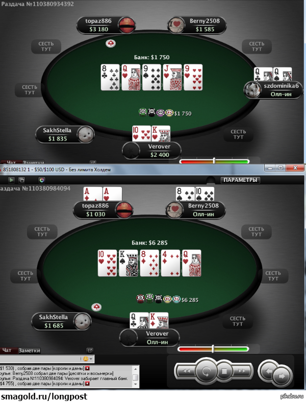 Вот такую раздачу мне удалось сыграть на PokerStars) Играя в живую, шансов увидеть такое мало, зато PS не перестает удивлять! P.S.: А на PIKABU есть покеристы?