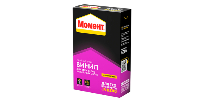 Продолжает наш обзор «Момент Винил» — специализированный клей для наклеивания виниловых обоев. Этот клей обеспечивает надежное сцепление тяжелых обоев с различными поверхностями, включая бетон, гипсокартон и штукатурку.