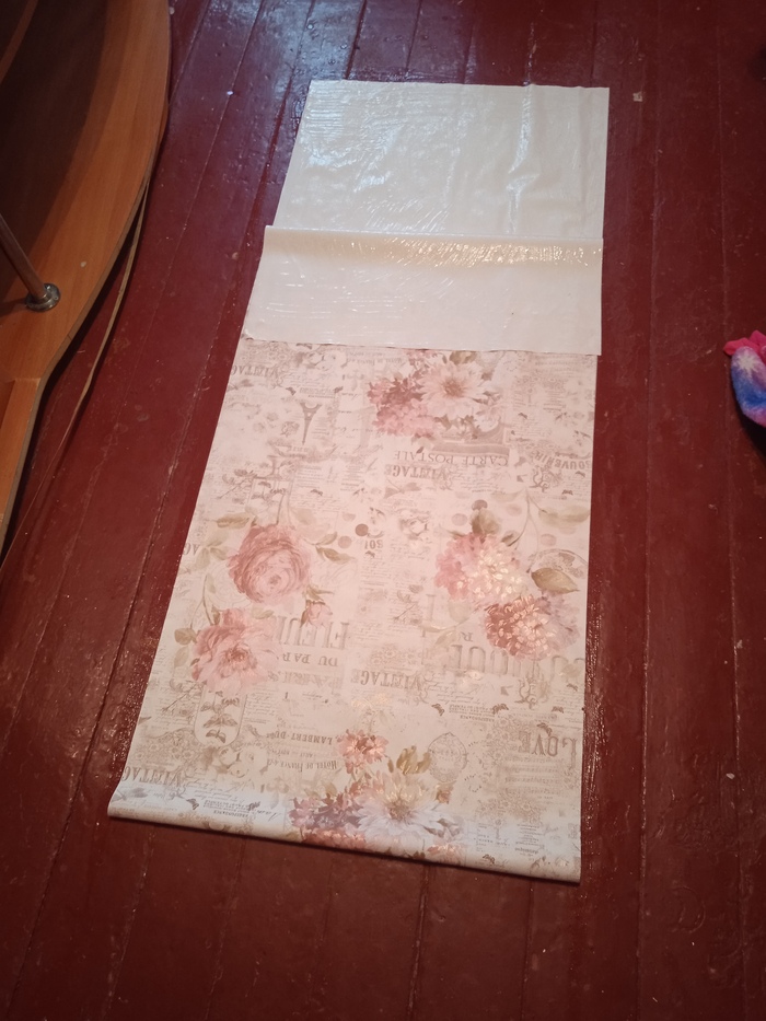 Банально клею обои. На обоях текст, что надо мазать стену и на нее обои.
