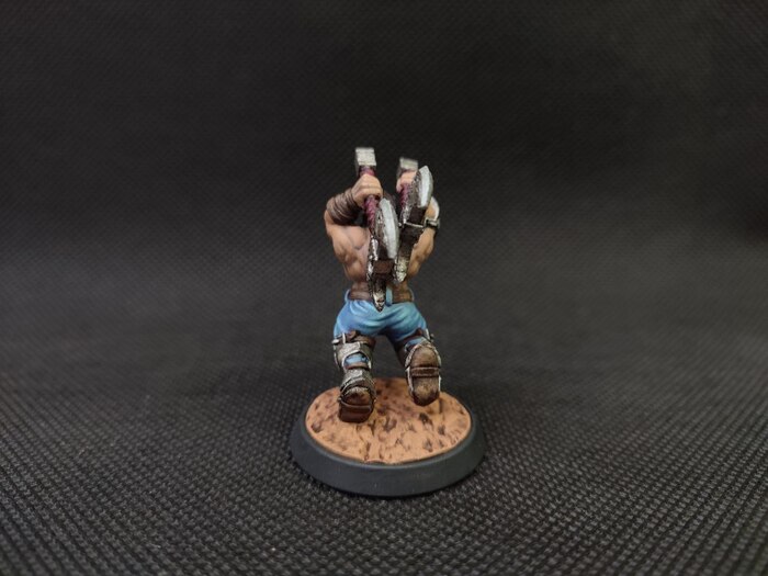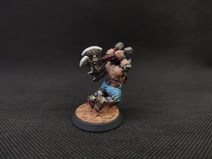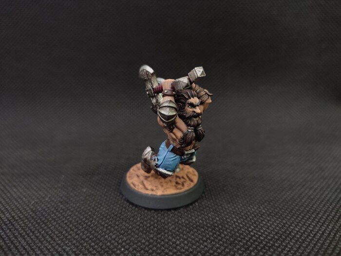 Миниатюра своей позой мне чем-то напоминает Росомаху из X-men. И мне иногда кажется, что дизайн современных дварфов вдохновлен образом байкеров. Джинсы сюда так и просились =)