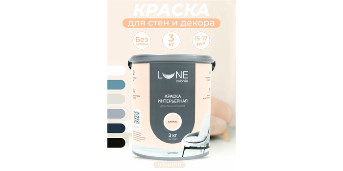 LUNE COLOREE практически не имеет запаха, что делает её подходящей для детских комнат и спален. Время высыхания на ощупь составляет около 2 часов, полное высыхание — до 6 часов. Краска легко наносится валиком и кистью, не требуя специальных навыков или сложной подготовки поверхности. Влагостойкие компоненты защищают покрытие от образования плесени в помещениях с повышенной влажностью. Палитра оттенков включает более 50 актуальных цветов для современного интерьера. Благодаря высокому качеству пигментов краска долго сохраняет первоначальный оттенок без выгорания.
