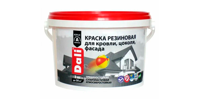 Резиновая краска DALI коричневого цвета в упаковке 12 кг предназначена для наружных и внутренних работ. Состав на основе полиакриловых дисперсий обеспечивает высокую эластичность и устойчивость к атмосферным воздействиям. Краска подходит для нанесения на бетон, кирпич, штукатурку, дерево, металл и другие поверхности.