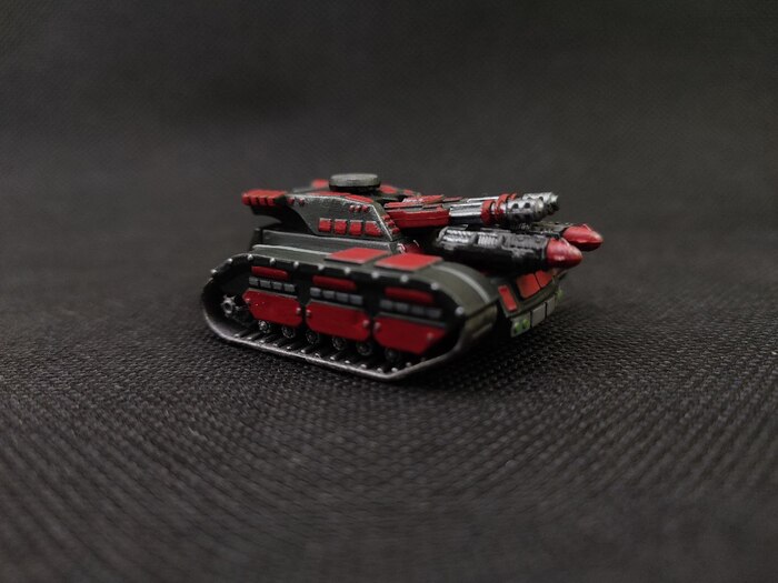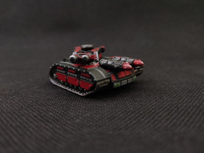 Альтернативная сборка танка. Мне не понравилась слишком громоздкая ракетная установка (ее бы раза в два меньше сделать). На башне она, на мой взгляд, выглядит совсем некрасиво, поэтому танк был развернут и ракетница переехала на корпус.