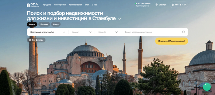DDA Real Estate — работает по Анталии, Измиру и Стамбулу, в кабинете клиента отображаются сроки платежей и статус оформления сделки. Команда консультирует по ипотеке в Турции и знает все нюансы инфраструктуры районов.