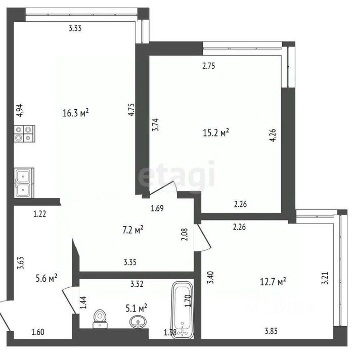 Для небольшой квартиры нет смысла делать два санузла. Лучше использовать это пространство более рационально — например, сделать кухню побольше.