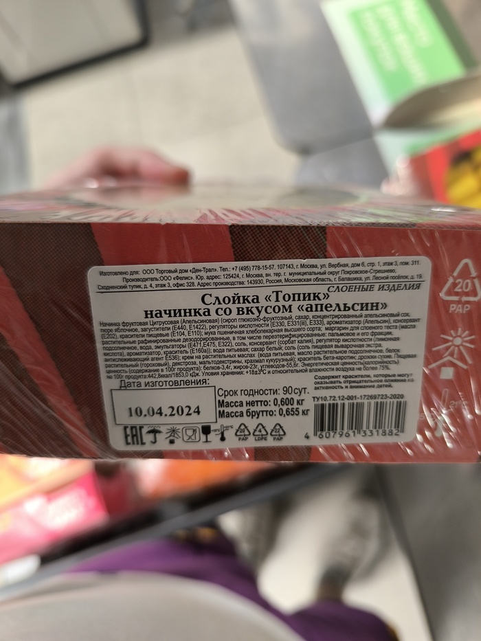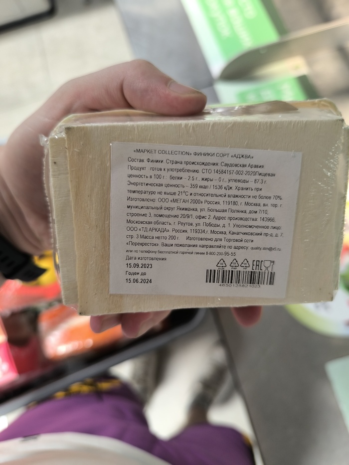 Вот он счастливый торт. Здесь важны детали. Дата производства 02.07.2024, а срок годности семь дней(как в "Очень страшное кино"). Считаем 7 дней начиная с 2 июля в соответствии с законодательством - 2,3,4,5,6,7,8.