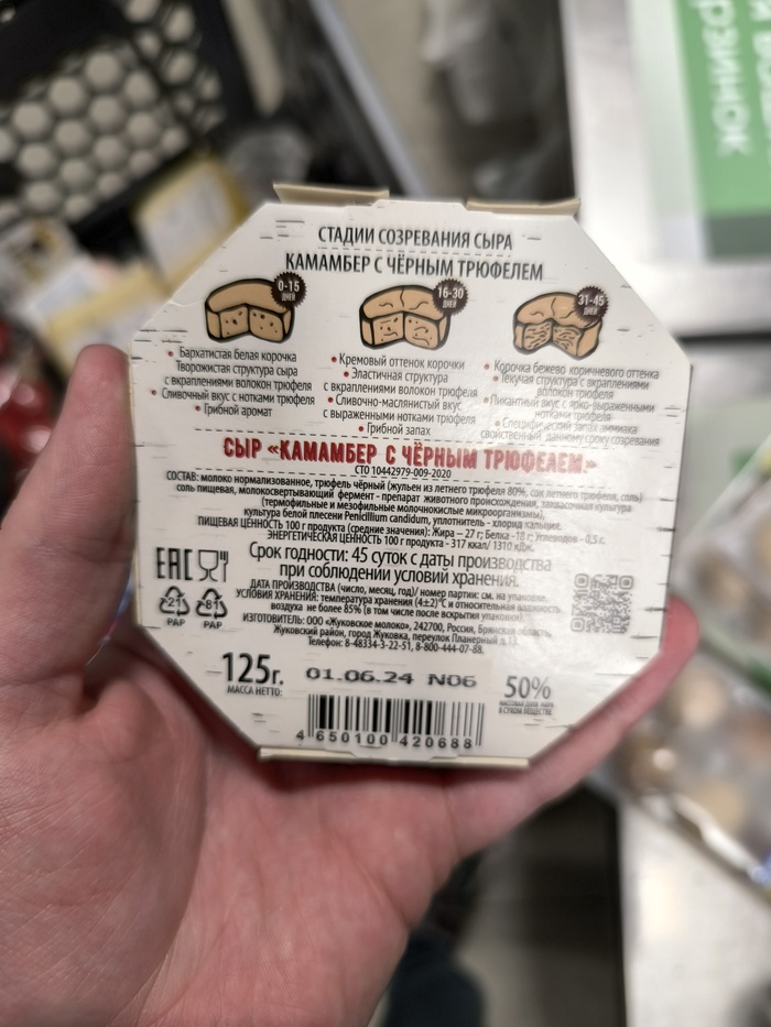 Ну и конечно порадовали огромным количеством просрочки в молочке. Сыр Качотта, сыр с белой плесенью, молоко.