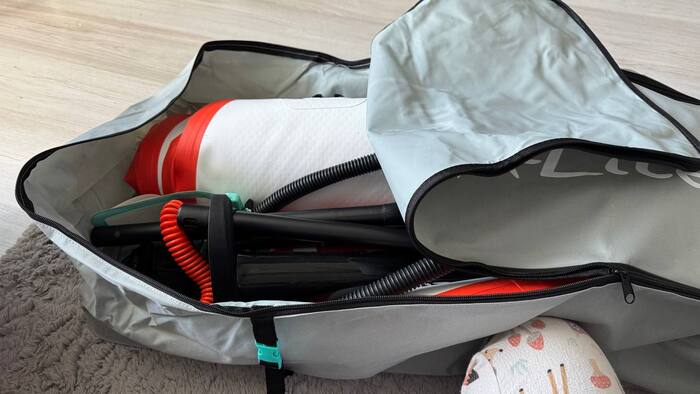 Комплектация: 3 плавника, алюминиевое весло с регулировкой по росту, лиш, насос с манометром, ремкомплект, чехол для телефона, сумка-рюкзак для перемещения всего этого добра)