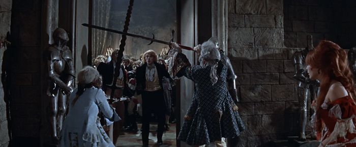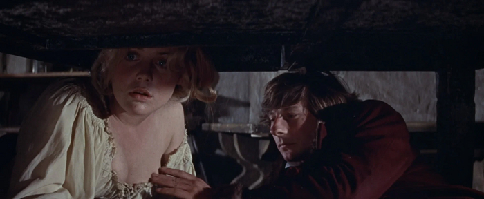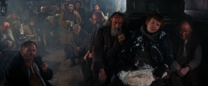 Сказка у Полански действительно вышла отменная. Ближе всего по атмосфере «Бал вампиров» к историям Алексея Толстого о вурдалаках («Упырь», «Семья вурдалака»). Фильм получился невероятно стильным, в основном за счёт натурных съёмок (которые проходили в Доломитовых Альпах и в замке Тауферс) и потрясающих декораций. Это бросается в глаза, особенно после просмотра более современных картин, снятых преимущественно в павильоне, где большая часть реквизита — стилизованный пластик. На их фоне «Бал вампиров» выглядит… настоящим. Живым. Веришь в этот постоялый двор, где деревенский дурачок в углу ощипывает гуся, пока хмурые лесорубы мочат усы в кружках, веришь в бескрайние заснеженные просторы, где по ночам раздаётся волчий вой, веришь в средневековый замок со склепом, где жуткие портреты оплетены паутиной. Атмосфера такая густая, что аж ложка стоит.