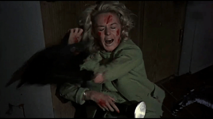 Однако этого ему показалось недостаточно, и он привязал птиц к актрисе. Они царапались и нападали на Хедрен в попытке улететь.