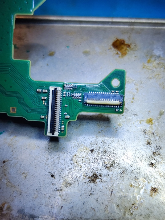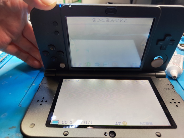 После замены всех компонентов консоль всё равно не включалась, но нижний экран начал моргать. Верхний при этом молчал. Значит, шлейф подсветки и динамиков либо бракованный, либо его повредили при установке. К счастью, у меня был новый- меняем!