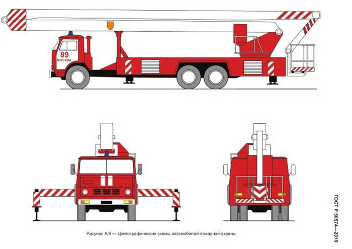 Любопытно, что нормы, предписывающие определенную окраску пожарно-спасательных автомобилей, автонасосов и автолестниц, к примеру, в РФ были разработаны относительно недавно, в 2019 году. Согласно стандарту ГОСТ Р 50574-2019, оказанные типа служебного транспорта должны иметь основной красный цвет кузова/кабины и белые опознавательные полосы.