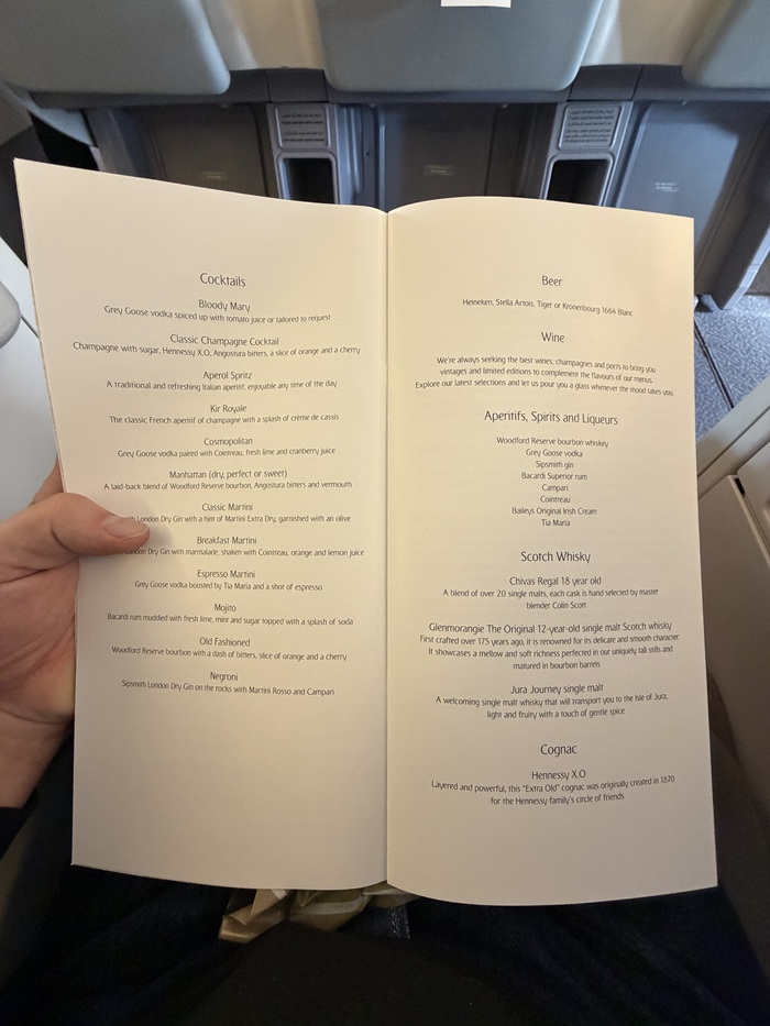 После взлета, проводница принесла меню. Где я выбрал еду и две чашки водки.