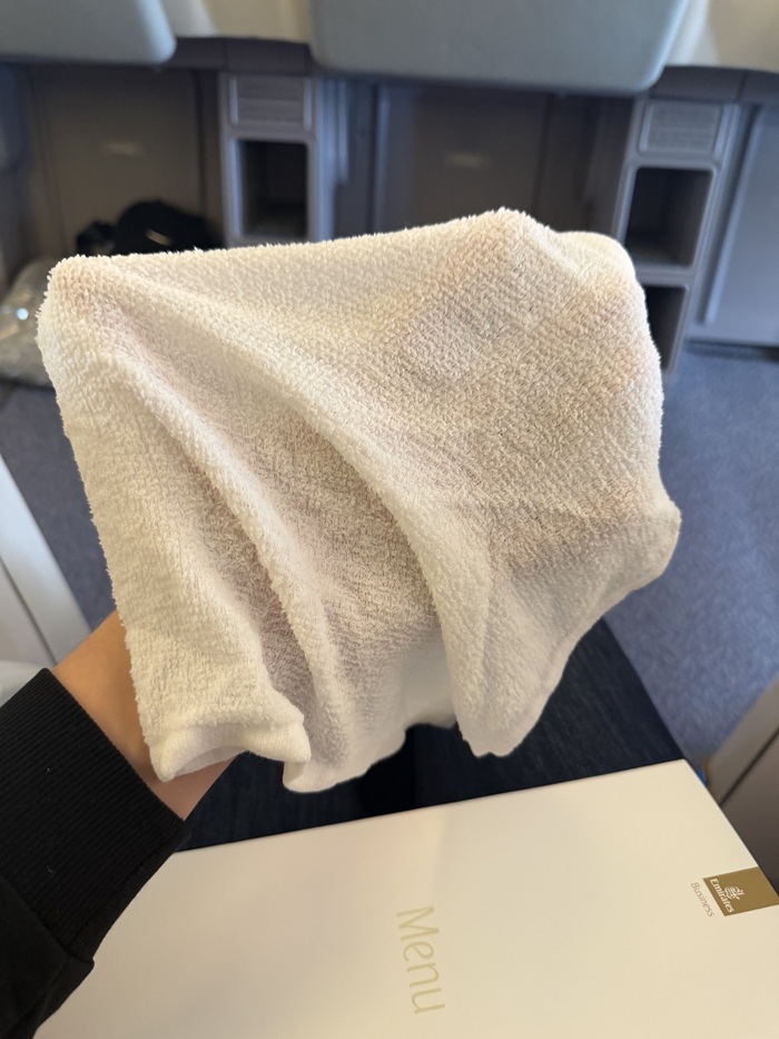 Стюардесса принесла сок и попросила принять сидячее положение и пристегнуться, так как у нас намечался взлет. Так же принесла мокрое горячее полотенце. Я сначала не знал что с ним делать, но подглядев у соседа, понял, что им нужно протереть руки, для чего не знаю - ну да ладно. Процедура оказалась приятная.