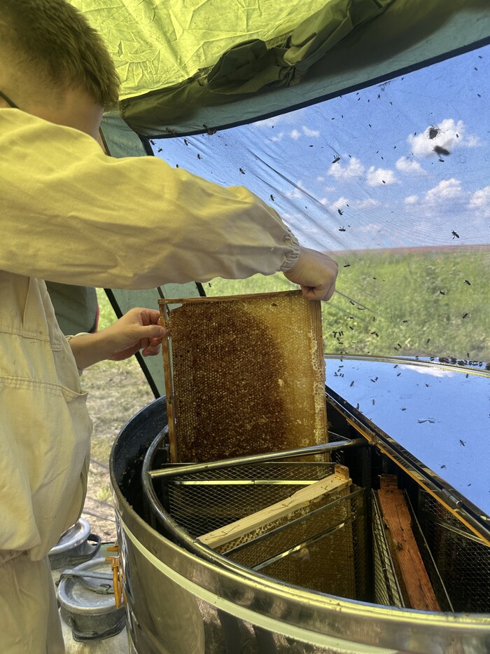 Везем мёд домой для фильтрации и фасовки по баночкам, а тысячи пчел продолжают свою кропотливую работу.