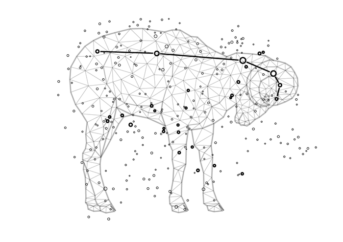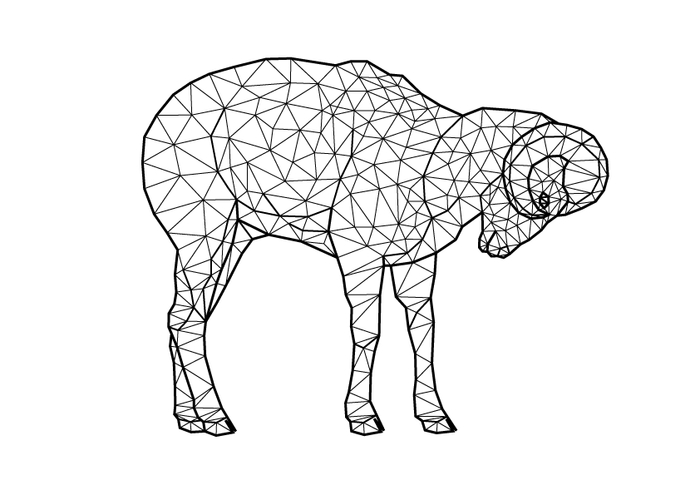 И теперь нам предстоит по этим точкам построить модель, которую можно будет приближать. Самый простой способ - заполнить пространство между точками плоскостями. Плоская фигура, ограниченная несколькими точками на языке математиков называется полигон. Но на самом деле из всех возможных полигонов в 3D графике используется только один, самый простой - треугольник. Берем ближайшие 3 точки на поверхности нашего объекта и чисто условно говорим - а вот между ними я буду считать, что тут все плоское и это это сплошной треугольник, без дырок и выступов. И вот мы уже чудесным образом получили Полигональную модель. Для хранения в компьютере такой модели нам достаточно запомнить координаты вершин треугольников. Это просто и быстро. Пересчитать эти координаты для различных точек зрения - тоже просто. Исходное облако точек можно очень сильно подсократить - ведь многие точки оказались на одной плоскости. Если не заморачиваться раскраской, то на экране мы увидит множество линий соединяющих точки по типу рыбацкой сети. Вот так и называют полигональные модели в AutoCAD - Сеть = Mesh или устаревший вариант Многогранная сеть = Polyface Mesh.