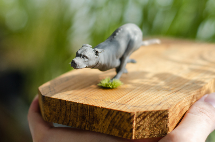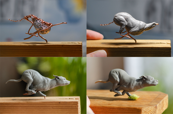 Приветствую, пикабушники. Давно хотелось слепить какого-нибудь динамичного пёселя, и вот, наконец, он слепился. Не знаю, когда возьмусь за роспись, поэтому делюсь фото сейчас.