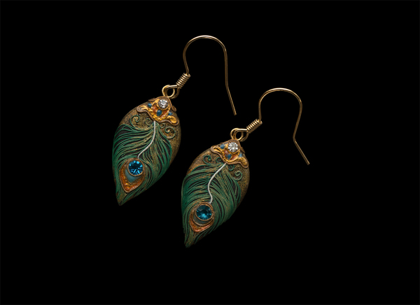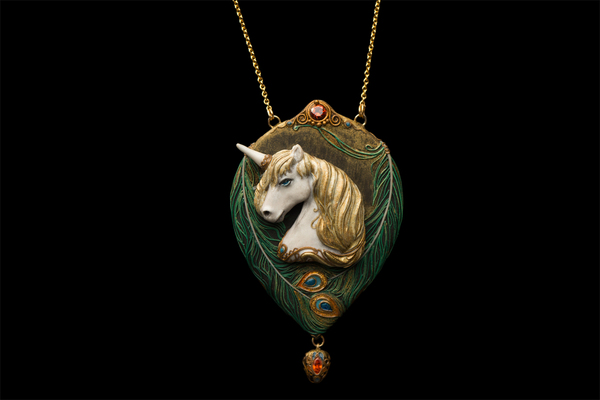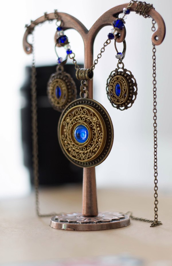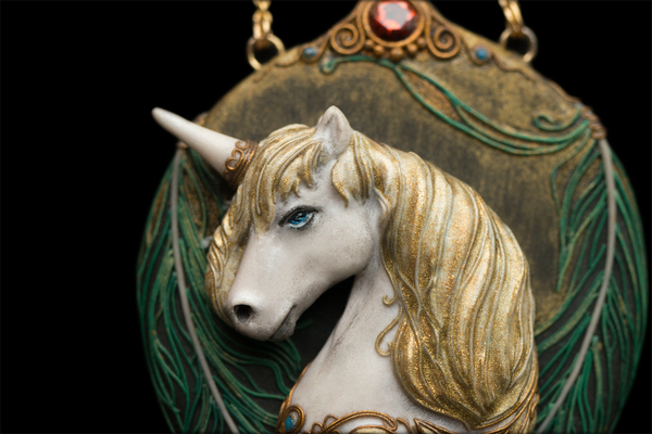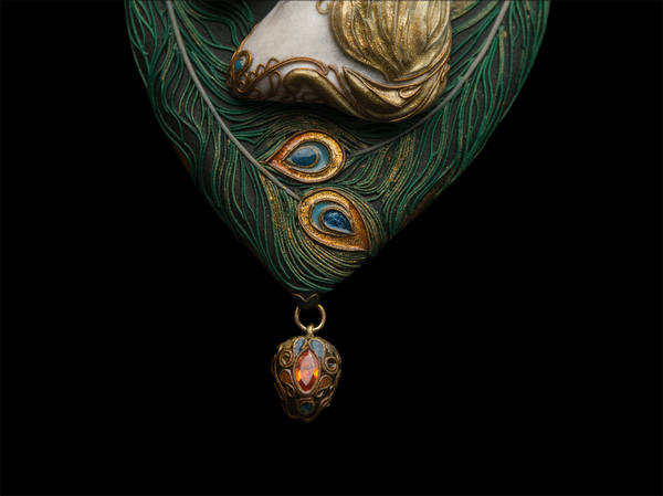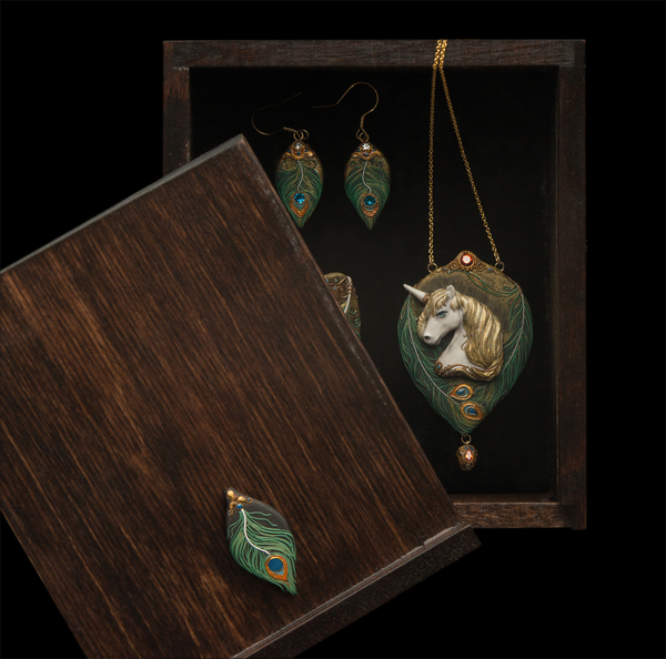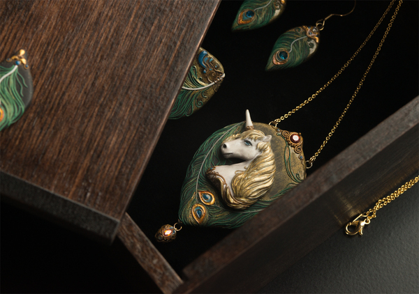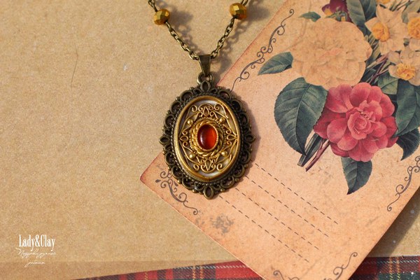 Основные материалы: полимерная глина, пигменты, краски, лаки, стразы, холодная эмаль, эпоксидная смола (задняя часть), металлическая фурнитура.