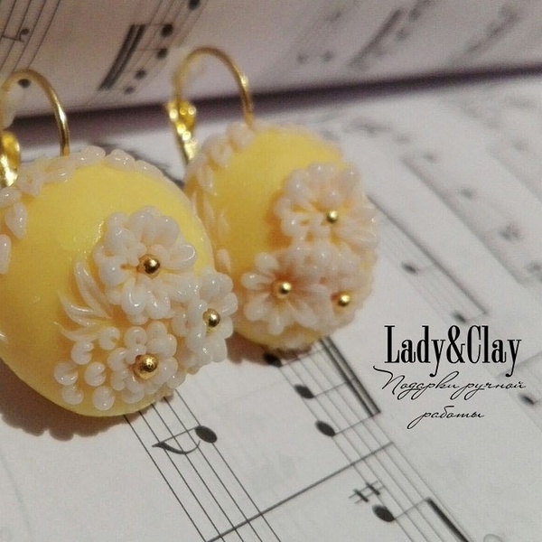 Серьги "Нежность". Размер: 4,5 см в длину. Сделаны под заказ. Работа выполнена полностью из полимерной глины (окромя металлических швенз) в технике филигрань (да-да, камешки из той же ПГ, увы, все магазинные камушки заказчика не удовлетворили как в цветовом, так и в габаритном плане).