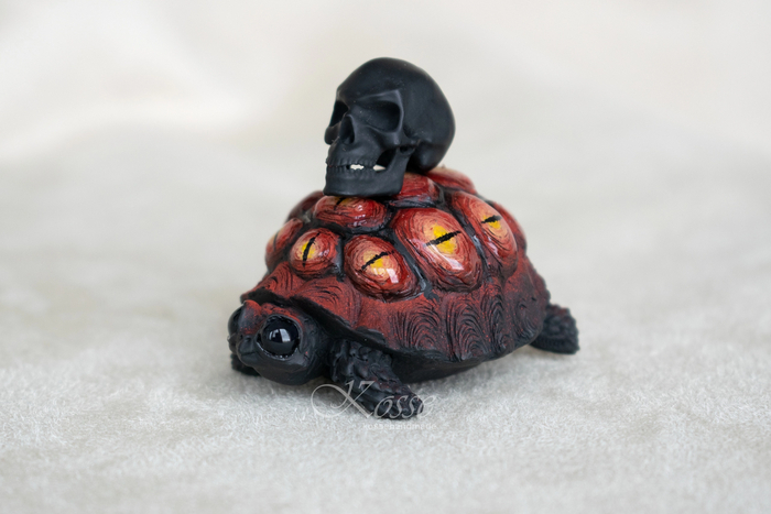 Вообще я леплю из полимерки (и сама тиражирую потом) милых драконов и рептилии. Но в этом году решила их "украсить" к Хеллоуину. Встречайте геккона-вампира, глазастую черепашку с черепом и крошечного дракона в тыкве