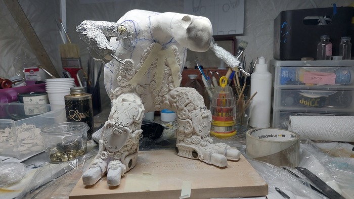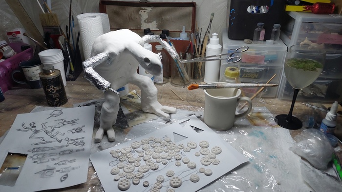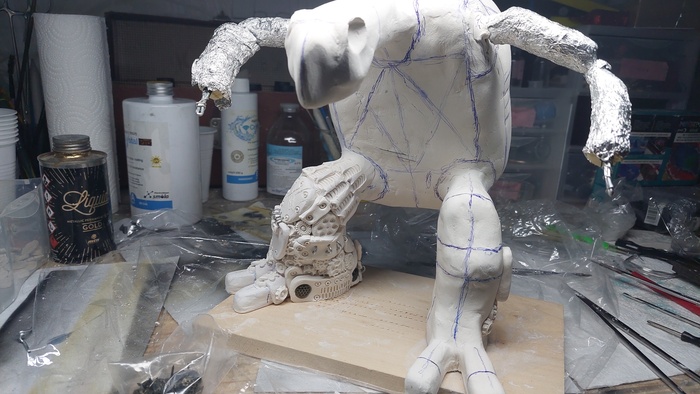 Обмотал все фольгой, закрепил проволкой. Пришла очередь лепки (глина дарви рок).
