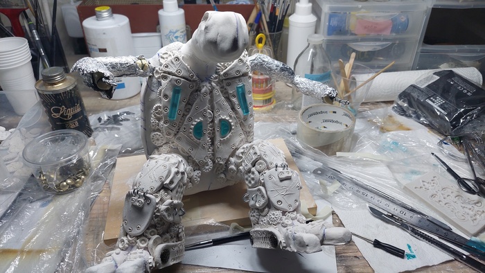 Попутно добавлял еще некоторые элементы брони из глины и стальной проволки.