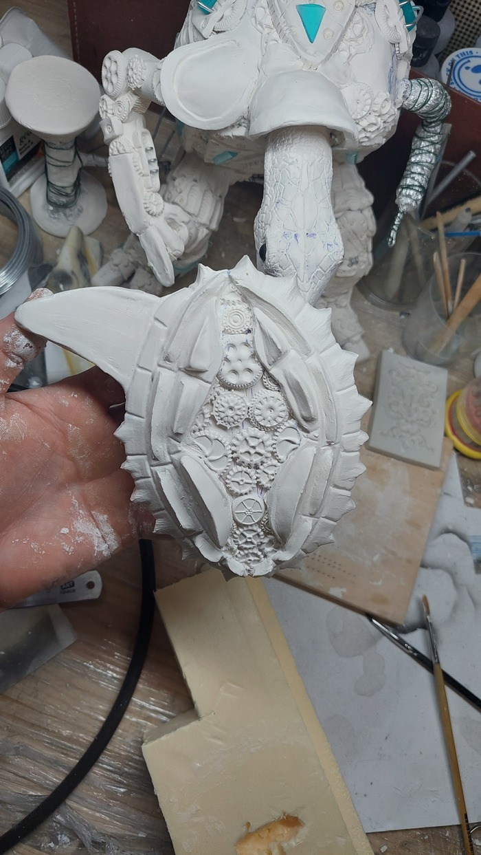 Покрыв каркас слоем глины, начал при помощи молда делать первые партии шестеренок.
