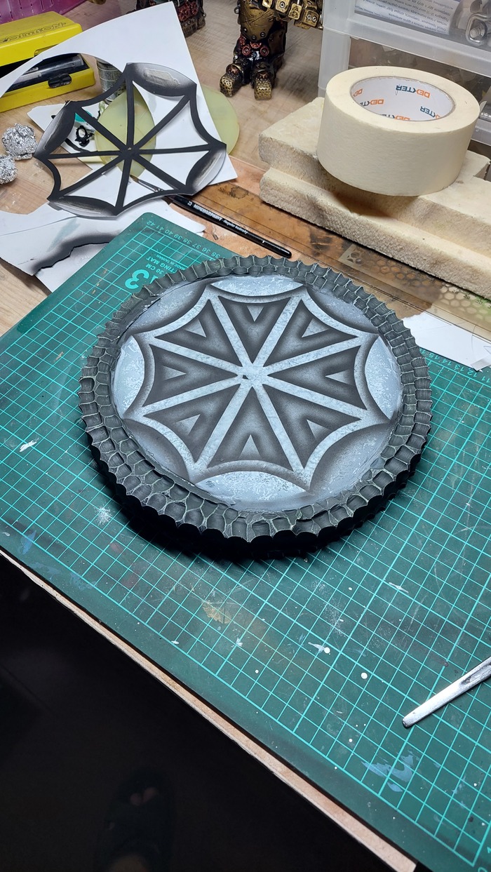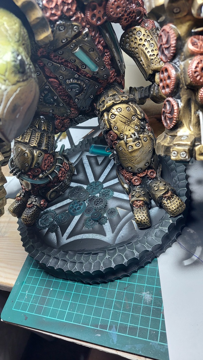 В сумме пришлось сделать около 120 шестеренок. Далее детали из эпоксидки были закрыты масками, все покрыто грунтом и покрашено. На щит добавил стабилизированный мох и залакировал.