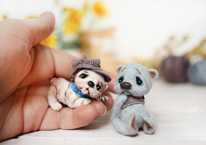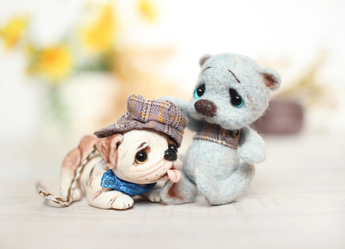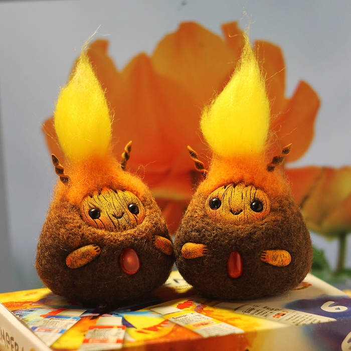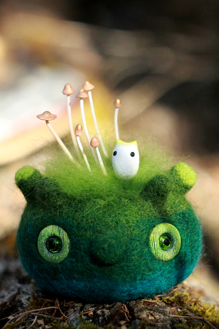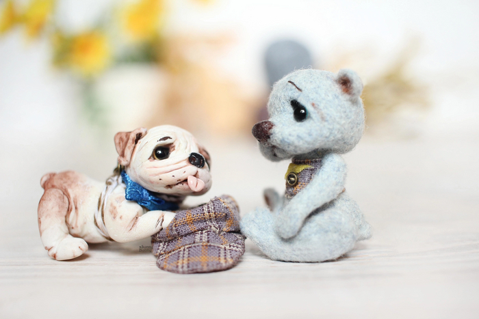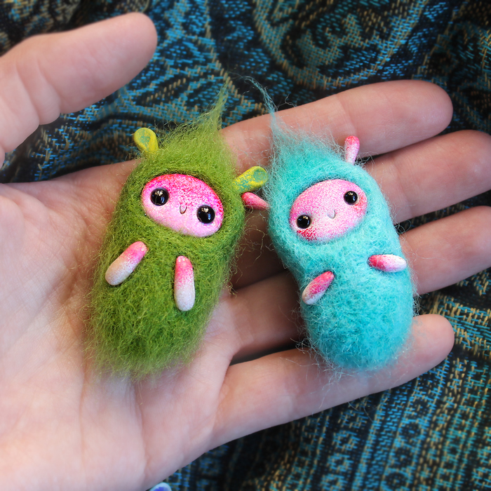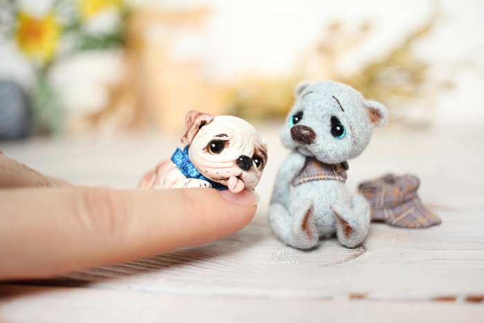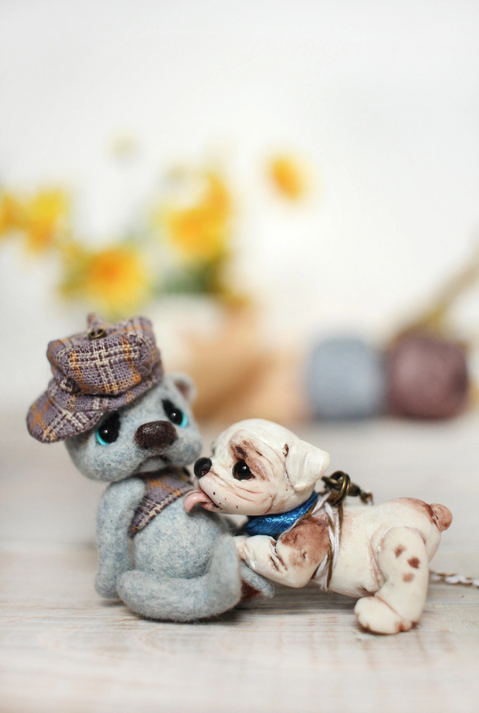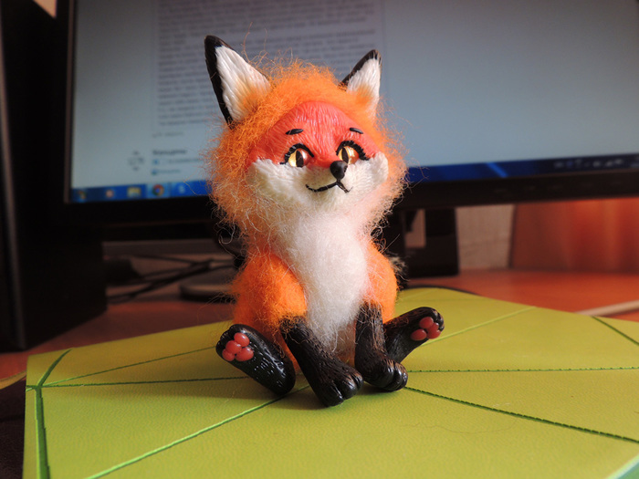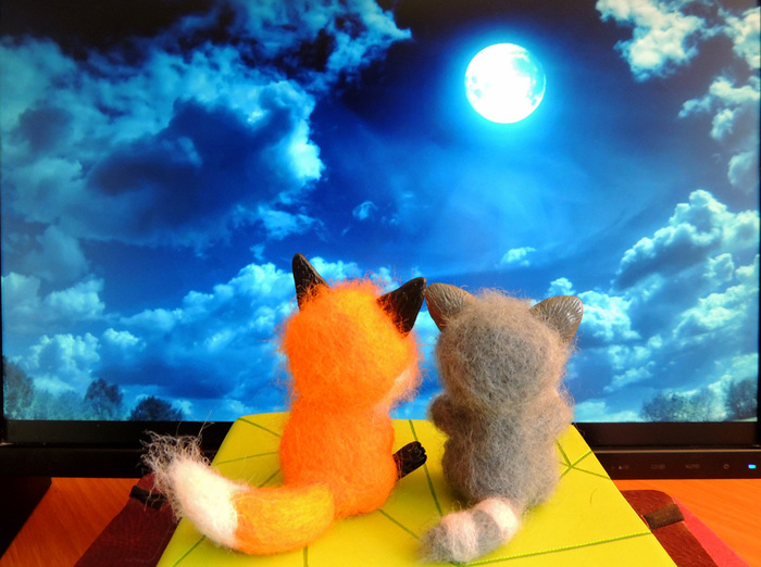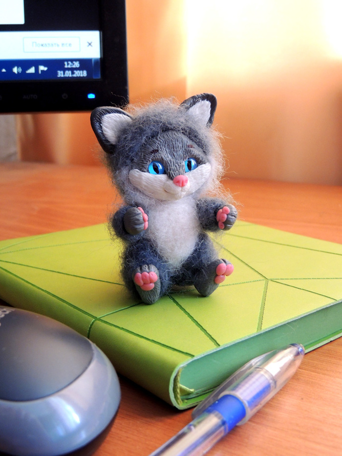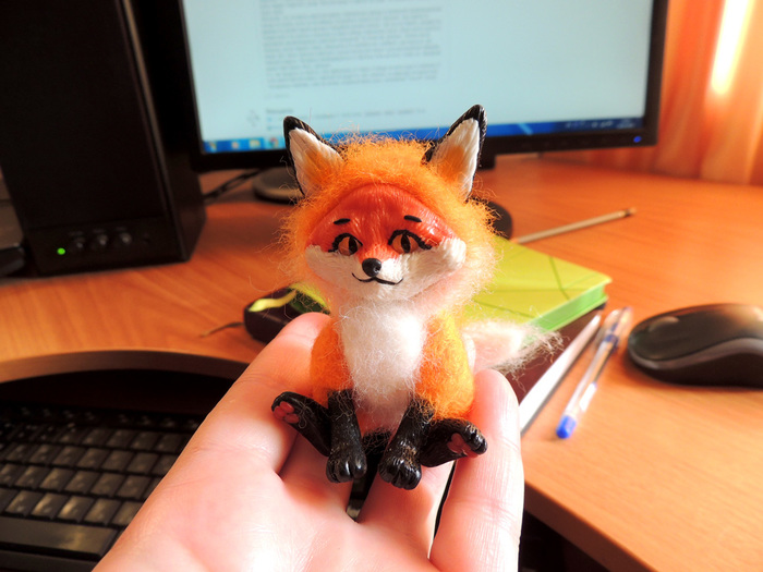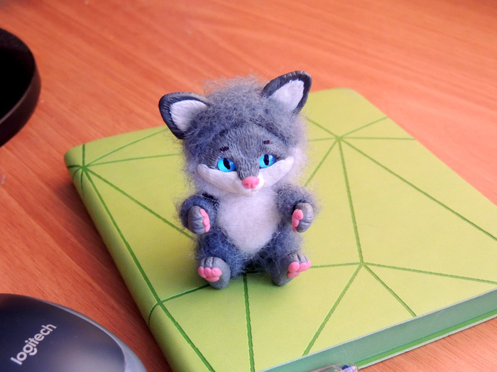 Попробовала тут свалять/слепить))) Высота в районе 7 см. Тушка и голова сваляны из шерсти, мордочка с лапками из запекаемой глины. Глазки - стеклянные кабошоны из братского Китая,- расписала, как смогла... На каркас пока не решилась, да и мелковаты зверики для такой детализации)))