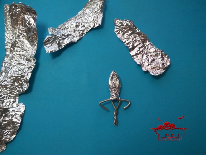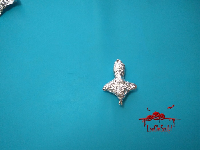 Дальше обматываем обычной пищевой фольгой, так пластика лучше "сидит" на каркасе и набираем форму