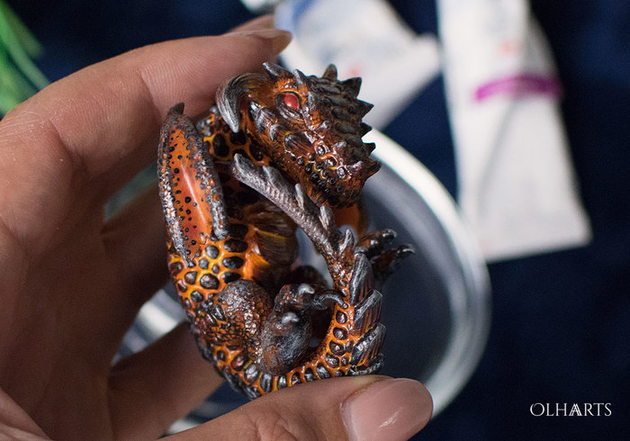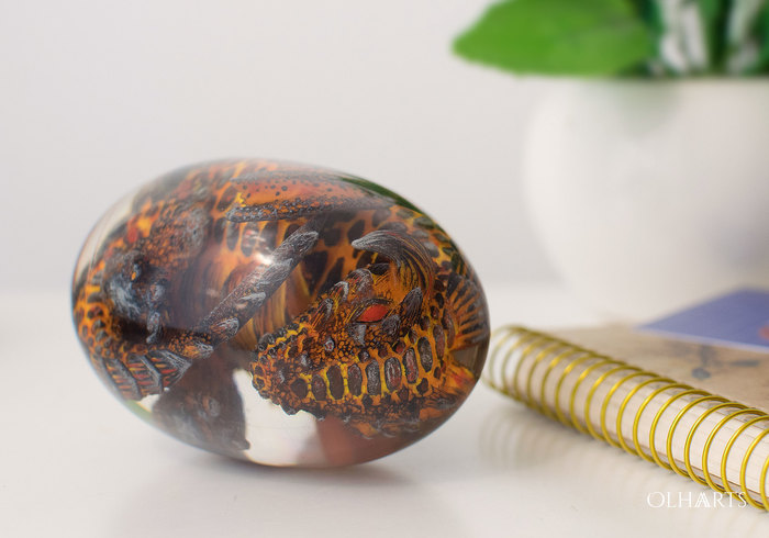 И, в итоге, вот: офигительный лавовый драконий ребенок и его вулканическое гнездо с легкой светодиодной подсветкой. Гнездо подключается к ноуту или мобилковой зарядке и тихонько подсвечивает яйцо, кайф. Само яйцо снимается, его можно таскать с собой отдельно и поглаживать в кармане :) Уииии, я счастлива!
