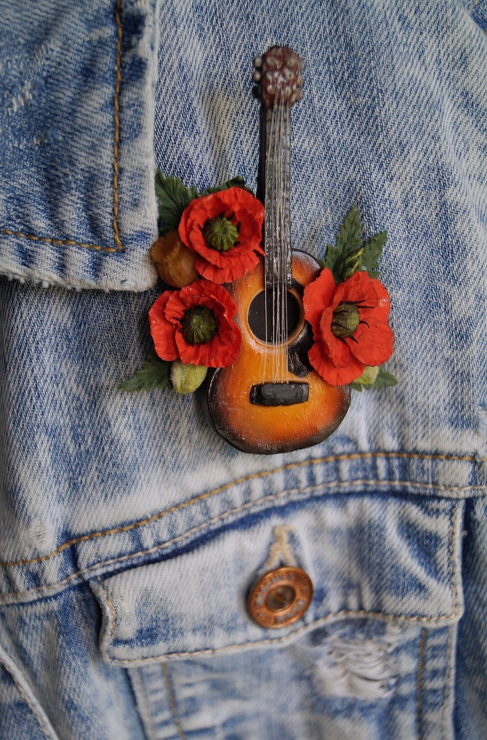 Брошь из полимерной глины, тонирована сухой пастелью, доработана акриловыми красками и покрыта защитным лаком.