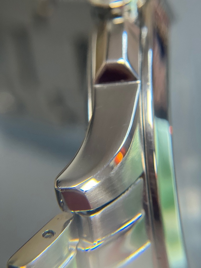 В этих часах интересно было восстанавливать ушки корпуса. Так как имеются 3 грани, 2 из них полированы в глянец, а последняя в однонаправленный сатин. Корпус часов был разобран. Механизм при полировке вынимался