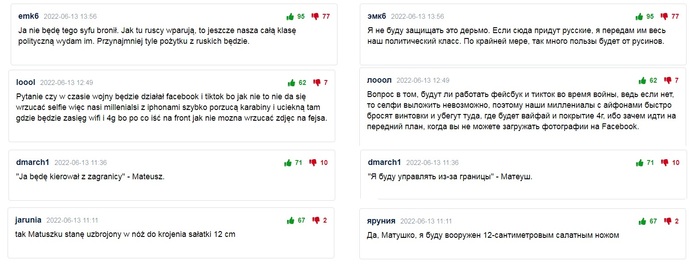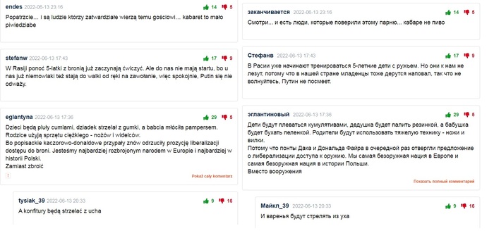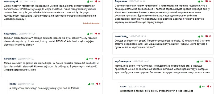 «Этот [нехороший человек] в Афганистане под видом иностранного журналиста стрелял в наших солдат. Ни в кого не попал, смылся с места событий, но потом хвастался перед своими сожителями фотками, где он изображён с автоматом в руках и в обнимку с каким-то басмачом. Особо не скрывал, что был в юности завербован американскими спецслужбами. Я Сикорского этого лично знаю, он меня принимал в 2010 году в Варшаве, произносил высокопарные банальности и тупые польские анекдоты».