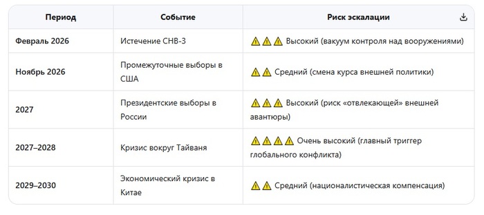 2026–2027 — критический период: решения по Украине, Тайваню и контролю над вооружениями определят траекторию следующего десятилетия. Успех дипломатии в эти годы может предотвратить переход к «горячей» фазе конфронтации.