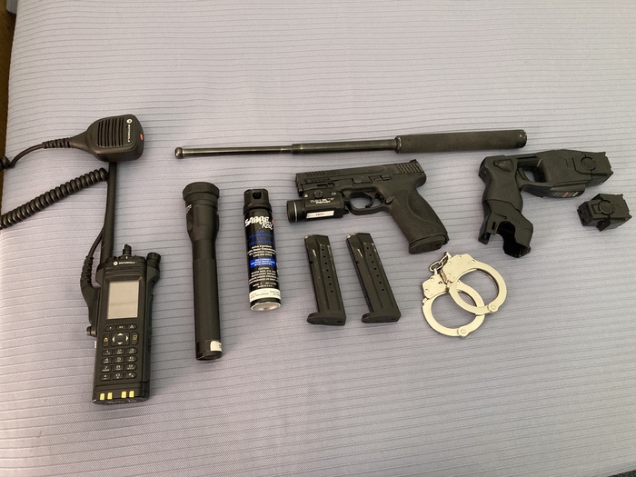 Приехал офицер и мы с ним поехали на заправку. Город выдает “топливную карту” каждому офицеру с машиной. На этих машинах офицеры могут ездить домой. В машине офицера с которым я ездил было следующее оборудование: wifi точка от сотового оператора, ноутбук, мини принтер, помповое ружье. На некоторых машинах есть встроенный радар и сканер номерных знаков.