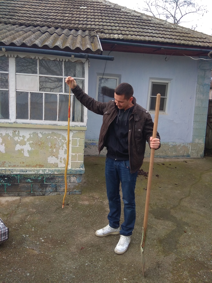 Уже когда змея не представляла опасности, выяснилось что это был полоз длиной 185см.