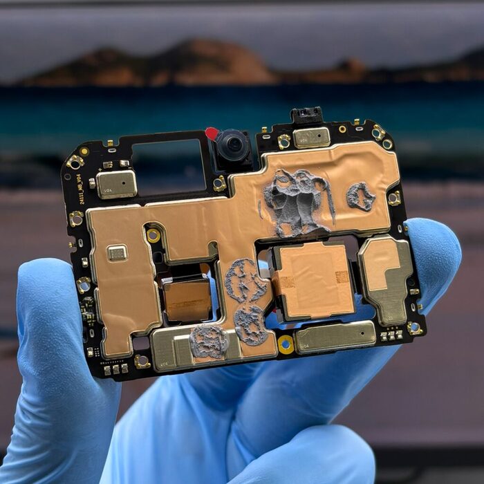 Собираем всё в обратном порядке и клеим новую влагозащитную проклейку Nothing Phone 3a, попутно вытирая все ляпки с прозрачной задней крышки)
