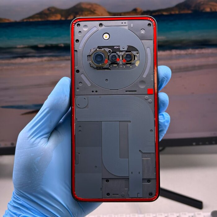 Для начала закидываем светящийся кирпич на сепаратор и снимаем заднюю крышку Nothing Phone 3a.