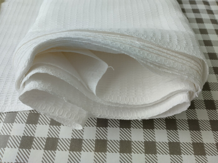 Таким образом, из такого полотна получится много полотенец, а главное недорого. Ведь вафельное полотенце хорошего качества стоит куда более 100 руб за штуку, на 500 руб много не купишь. Конечно, там продавались более веселенькие расцветки ткани, даже с узорами, но стоимость выше чем просто белая. Вот такие дела.